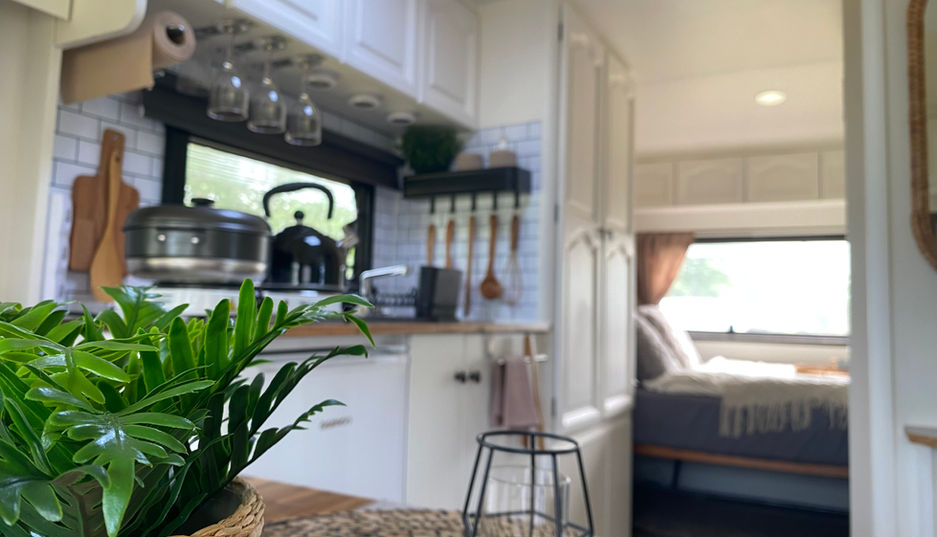 Helle Farben, Holzoptik und warme Stoffe verleihen dem Wohnwagen eine freundliche, einladende Atmosphäre. Die clever integrierte Sitzecke mit farbigen Kissen und stilvollen Vorhängen macht das Interieur zu einem echten Wohlfühlort für jede Reise.